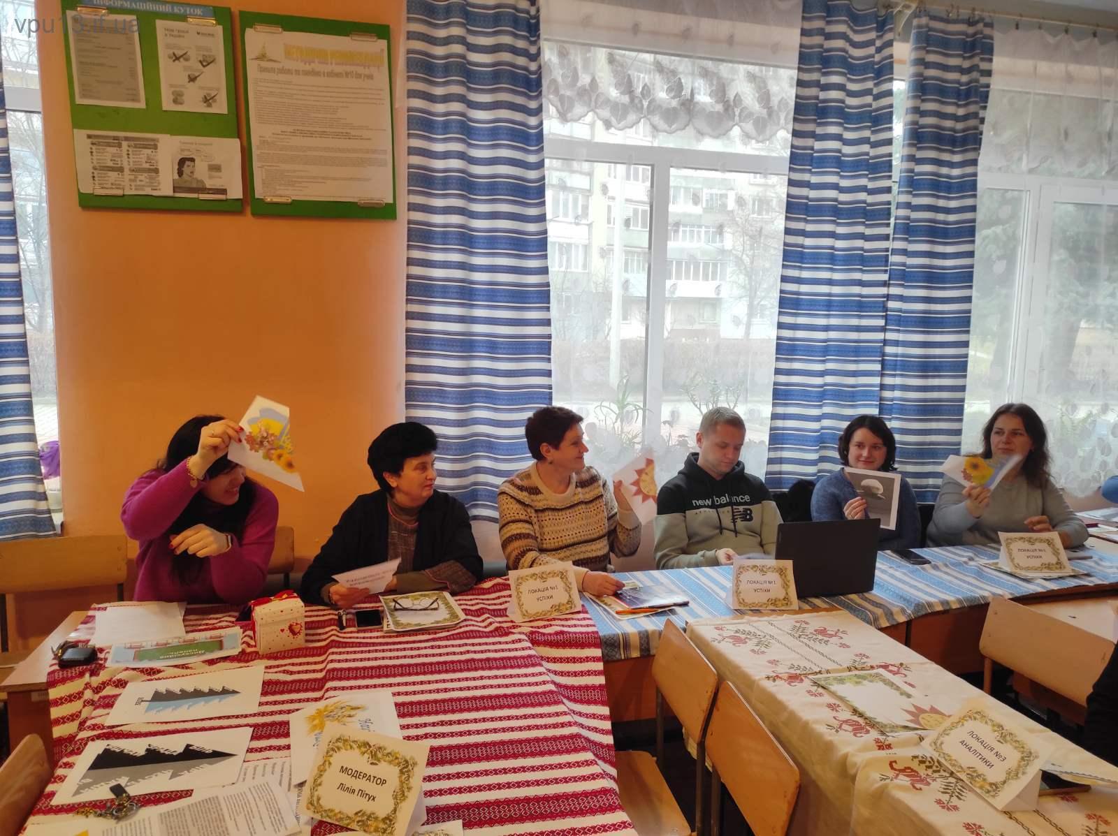 Члени методичної комісії умовно поділилися на 4 чотири групи (локації): “Успіхи у навчально-виховному процесі”, “Недоліки у навчально-виховному процесі”, “Аналітики”, “Громадськість”. На кожній локації йшло жваве обговорення підсумків навчально-виховного процесу за перший семестр 2022/2023 навчального року.