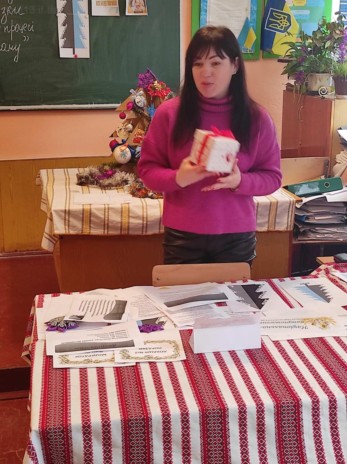 Класний керівник групи СРА 16-2 Уляна Мороз розповіла про важливість використання у процесі виховання різноманітних форм проведення виховних заходів та провела для присутніх вправу ^Загадкова коробка ^