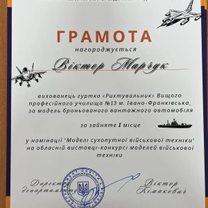 Вітаємо учнів ВПУ-13 м. Івано-Франківська та їхніх керівників за участь у обласній виставці -конкурсі моделей військової техніки з призовими місцями! […]