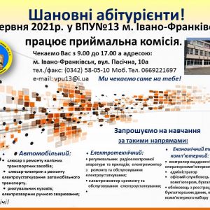 Ти ще не обрав шлях свого професійного життя? Стоїш перед важким вибором? Ми знаємо, як тобі допомогти! ВПУ-13 м. Івано-Франківська […]