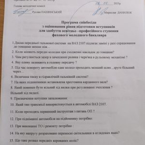 Програма співбесіди для здобуття фахового молодшого бакалавра 274 Автомобільний транспорт Вступна кампанія 2025