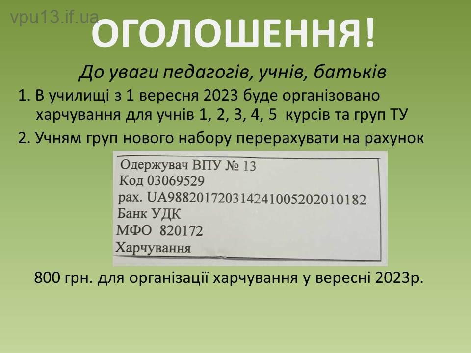 Документи до атестаційної комісії можна подати на електронну адресу vpu13@i.ua до 18.10.2023 р.